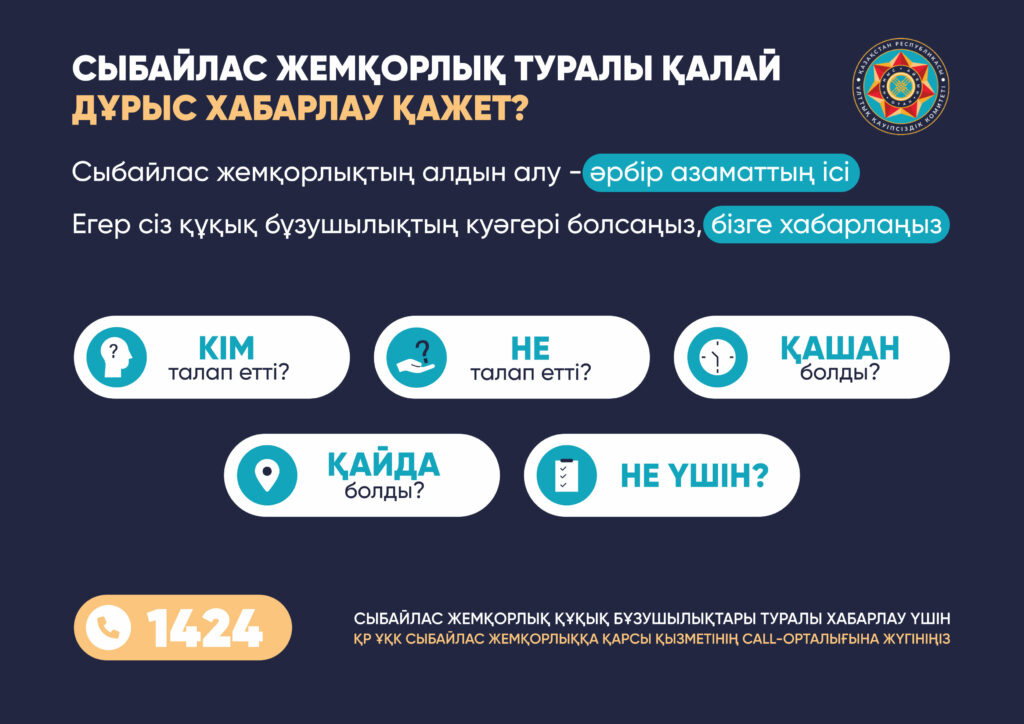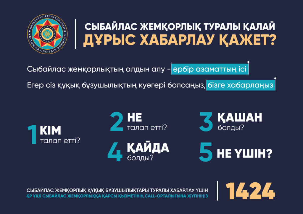 — сыбайлас жемқорлыққа қарсы заңнаманы бұзу туралы мәліметтеріңіз бар болса;