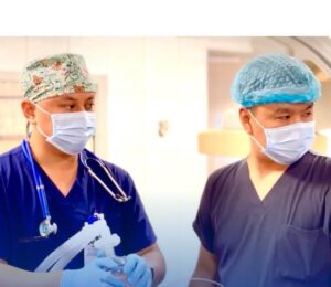интервенционные кардиологи — Садыков Арман Сапарбекович, Жолдасбай Алтай Данайұлы, кардиоанестезиологи — Аймырзаұлы Асқар, Есіркепов Бағлан Бахытұлы, сосудистый хирург — Кумаров Жайык Нурланович, кардиохирург и перфузиолог — Сайдалин Диар Мухтарович